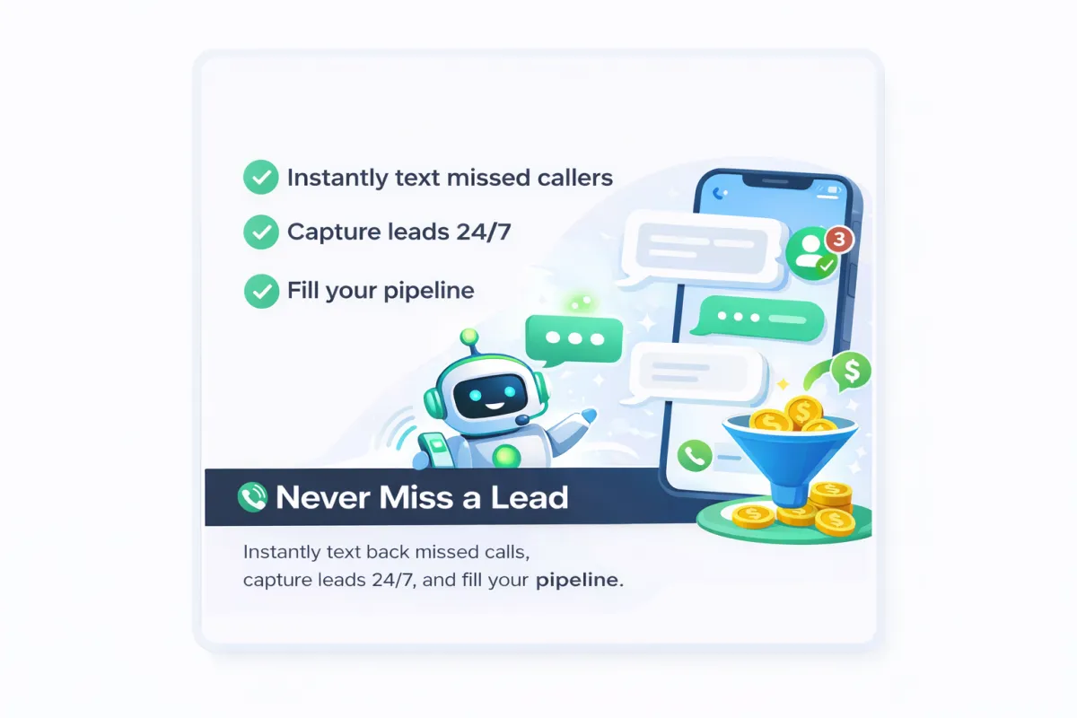 Automatically text back missed callers, capture their info, and turn more calls into customers.